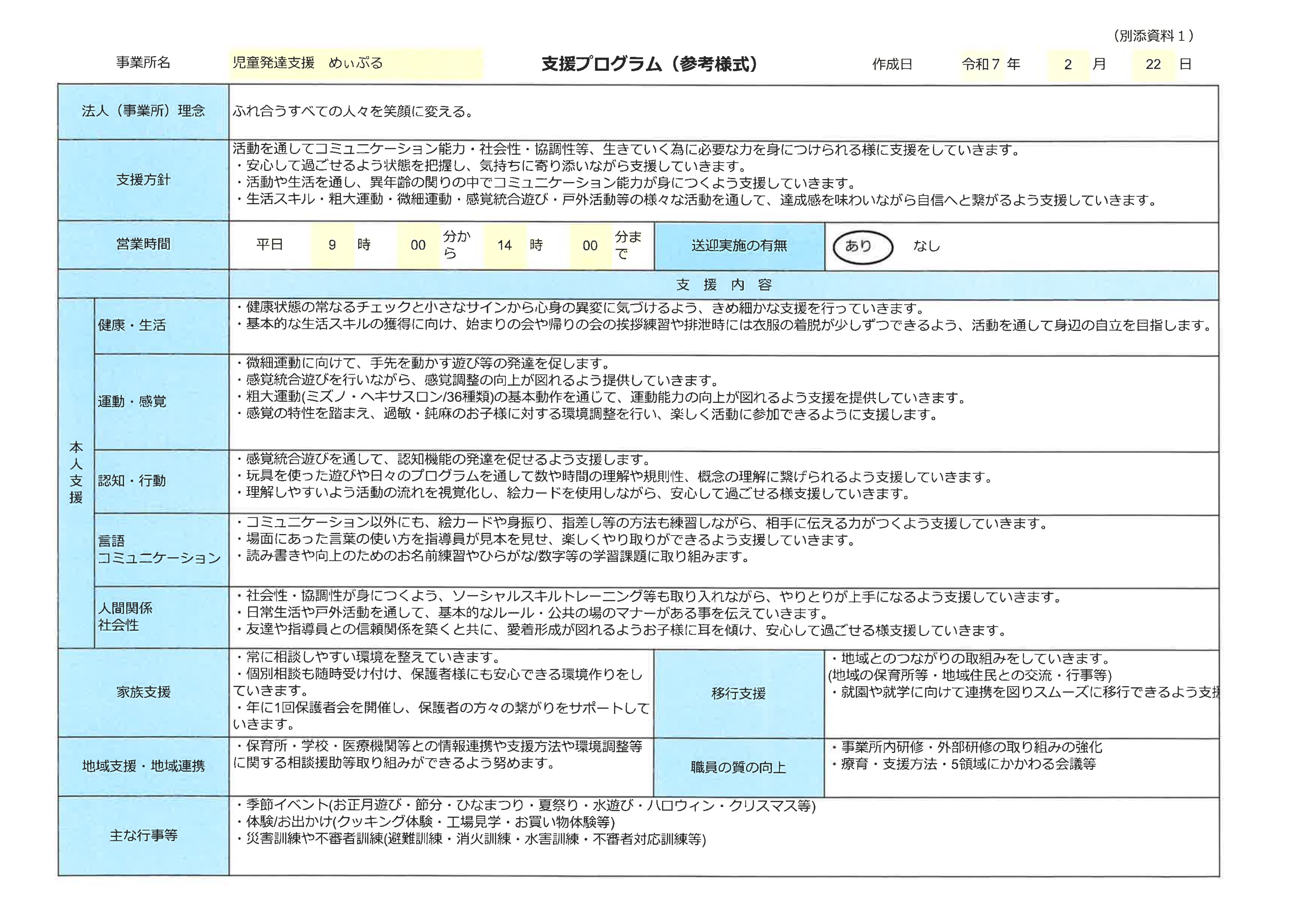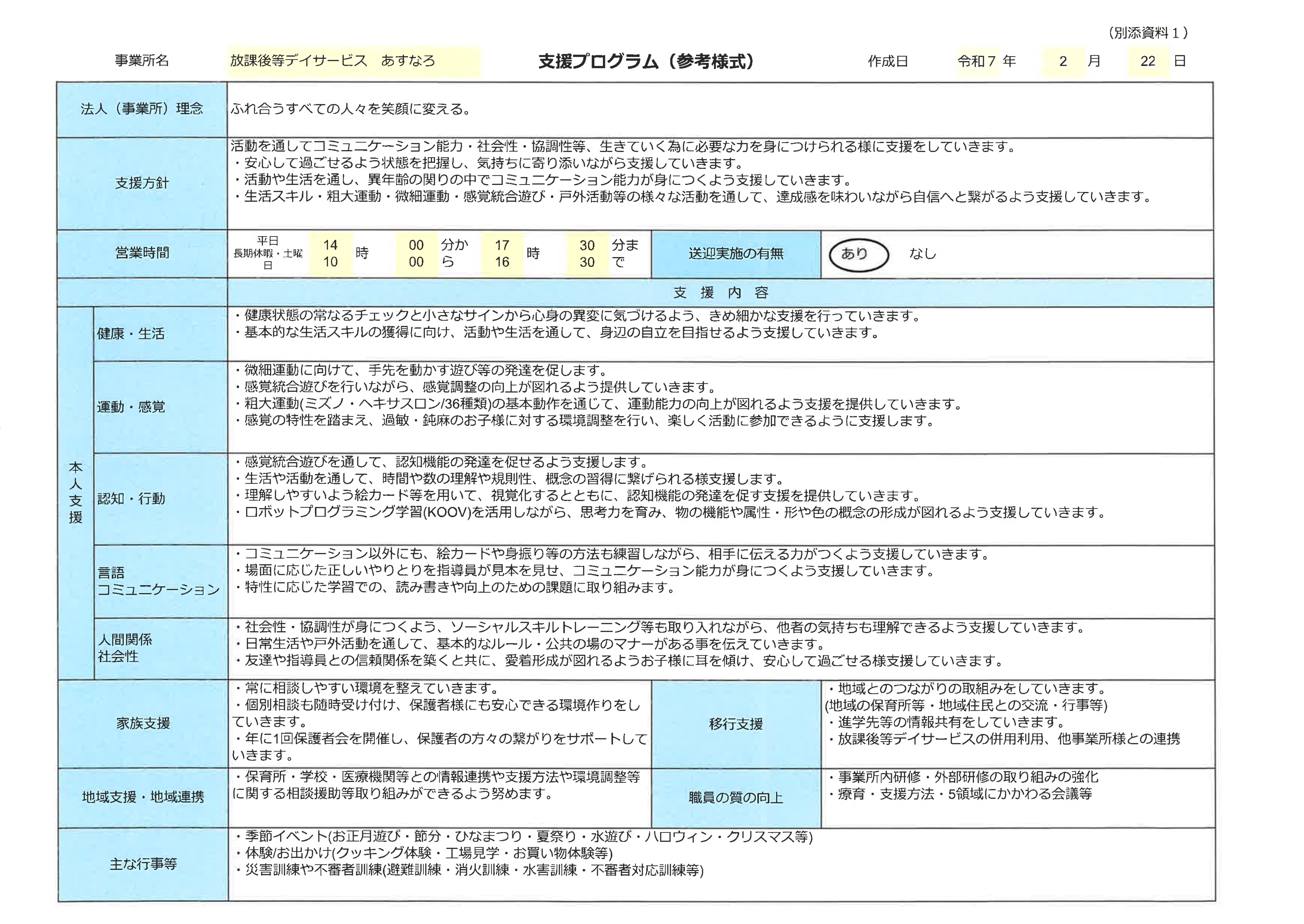 おこなっています。学校までお迎えにいき、帰りはご自宅まで送迎致します。もちろんご家族にお迎えに来て頂くことも可能です。